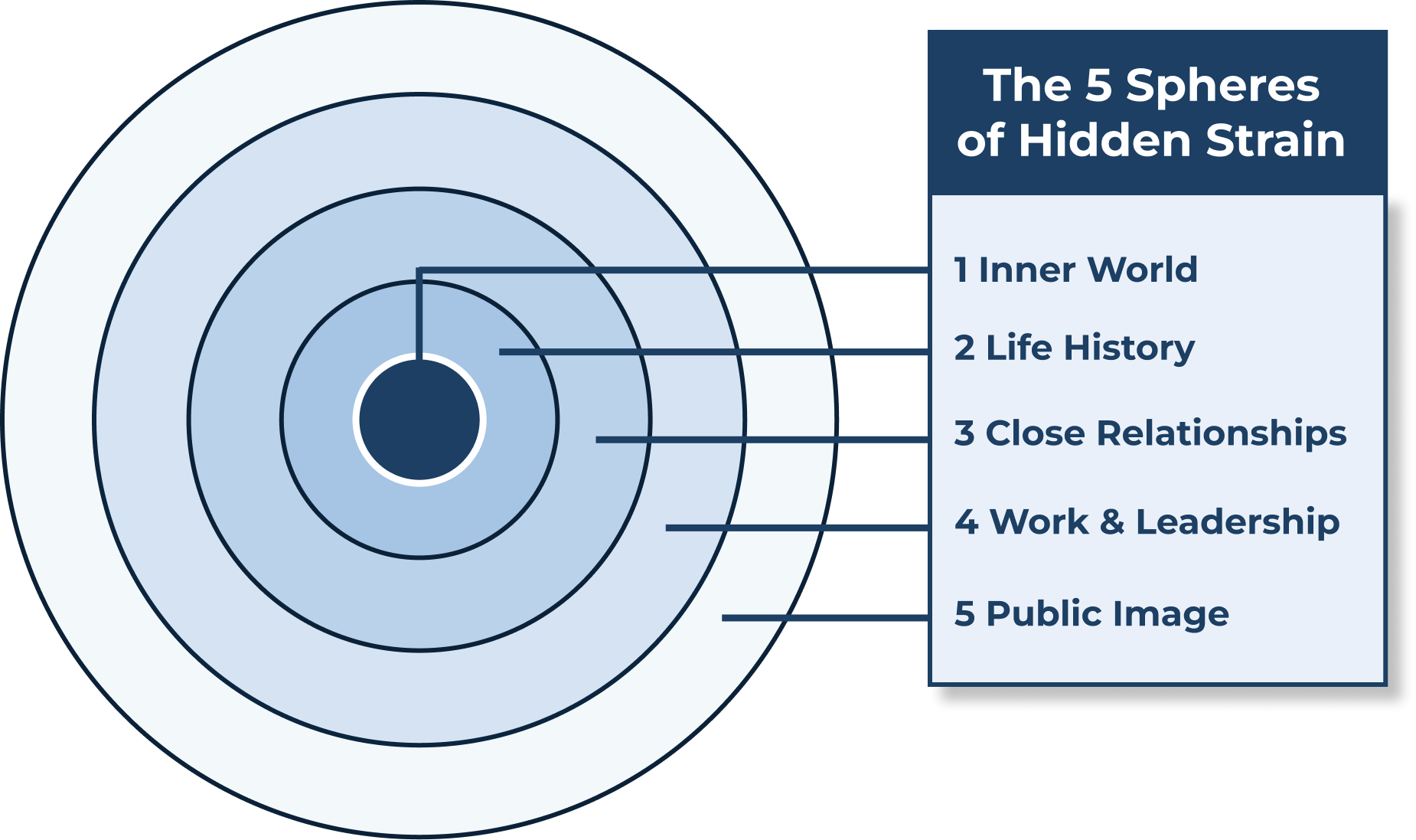 The work is confidential, non-clinical and framework-led. It helps surface what is really happening across the five spheres where hidden strain tends to live, leak and shape life.